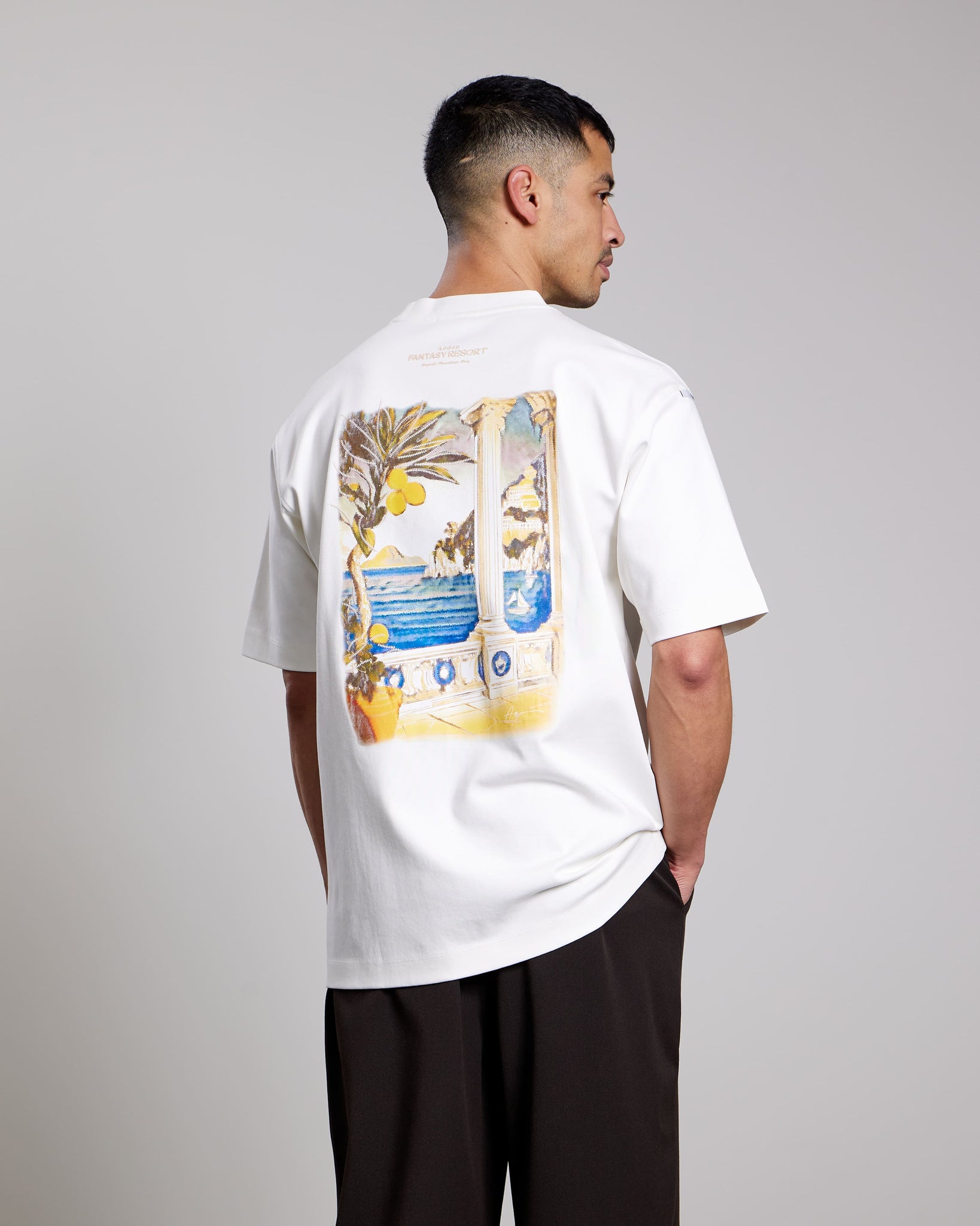 The Adrio Tee is a comfortable everyday t-shirt with a bold back detail. Made from 100% organic cotton, it offers a soft and natural feel. Finished with a large back print combining photo print, HD print and embroidery for a strong, layered look.