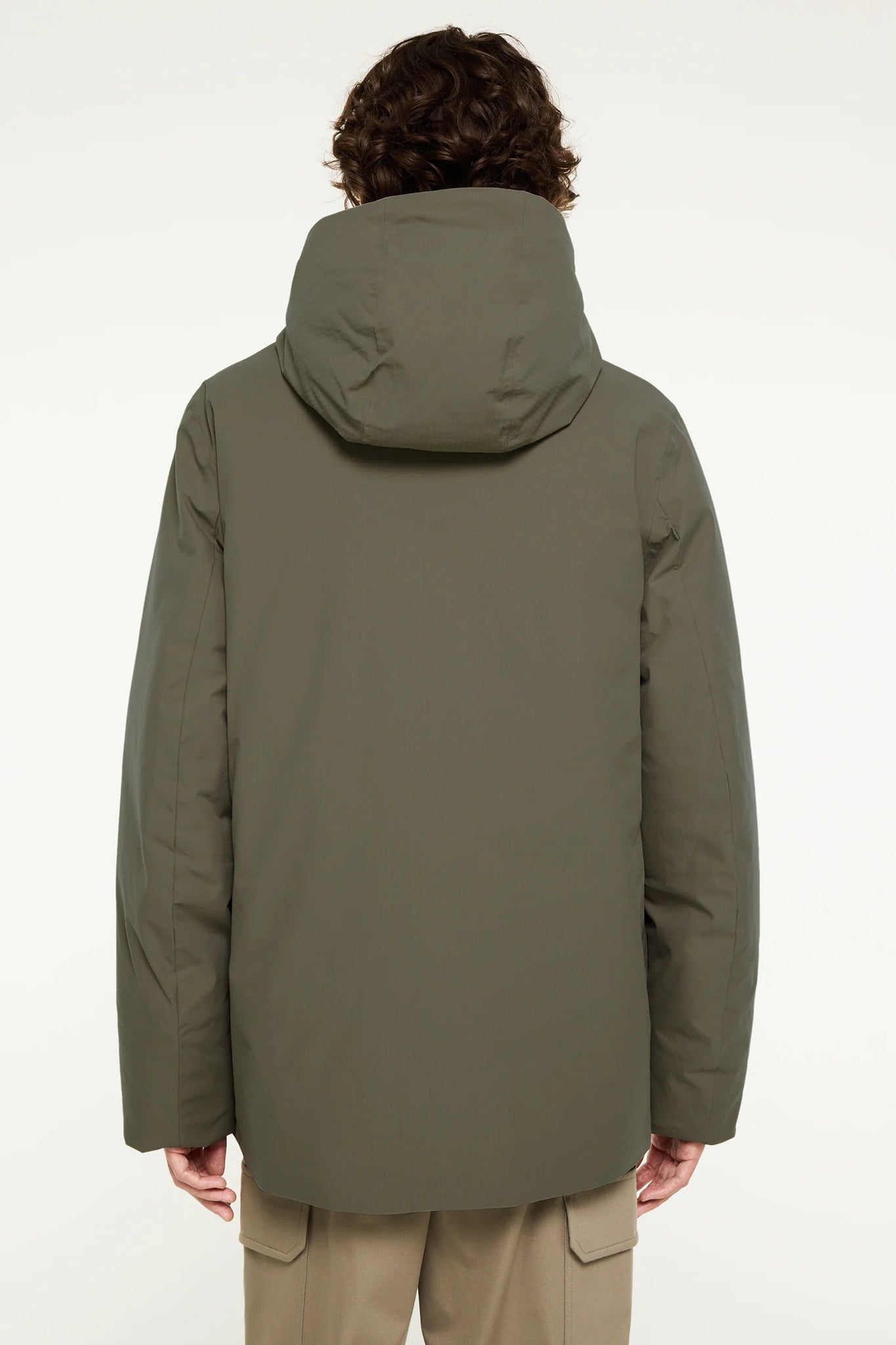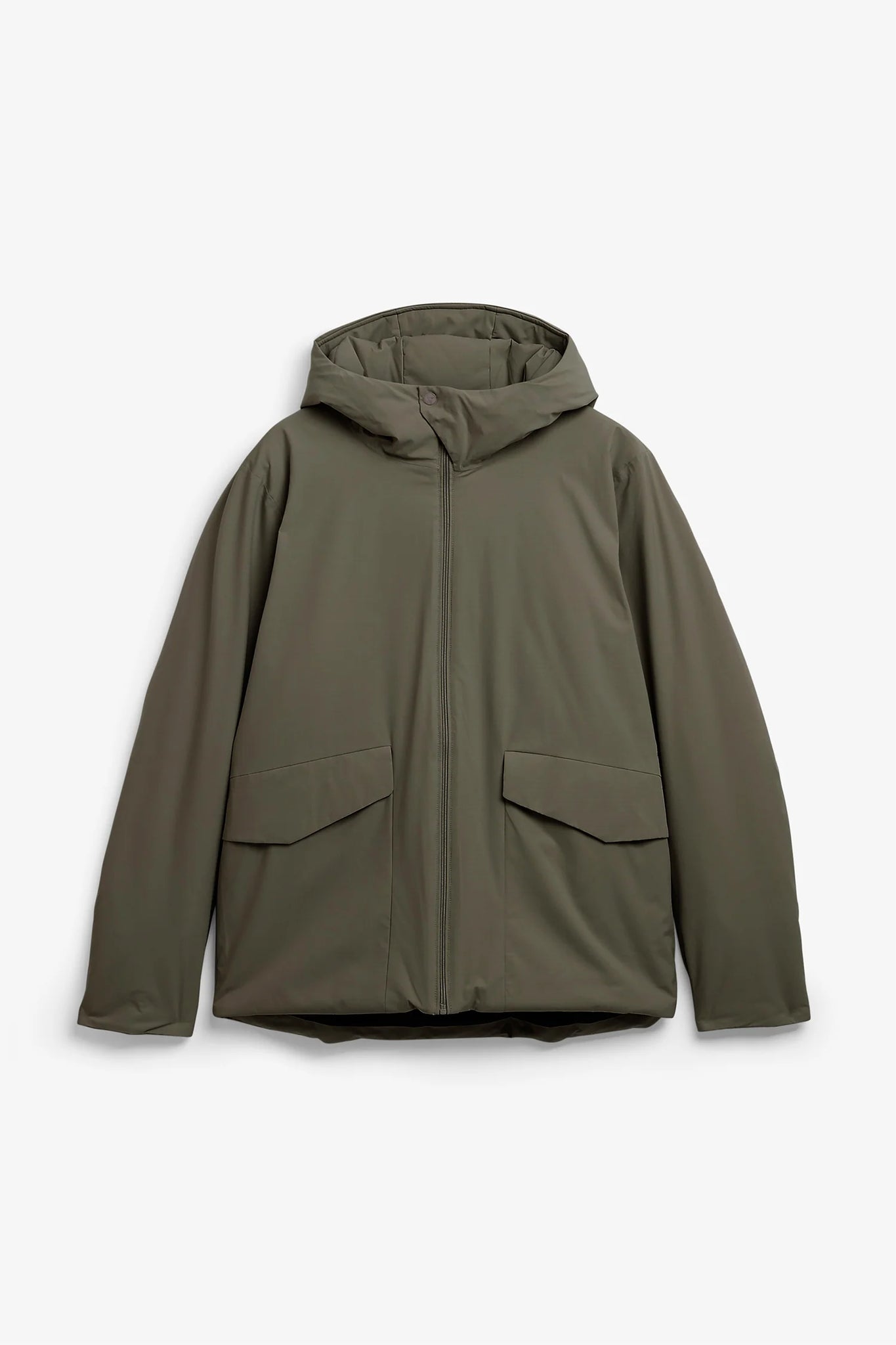 Letho is a light yet warm puffer made from Soft Grid 3K fabric. The recycled material is soft to the touch while maintaining a high resistance to rips and tears. Details include a wind- and waterproof membrane, pre-bent sleeves that follow the natural curve of your arms, a wide inner placket to stop the wind from blowing in, and a quilted interior. Letho is a clean, modern take on a classic puffer—designed to impress on city streets and beyond. The model is 188 cm tall and wearing a size L. Length of winter jacket: 79 cm (size L).