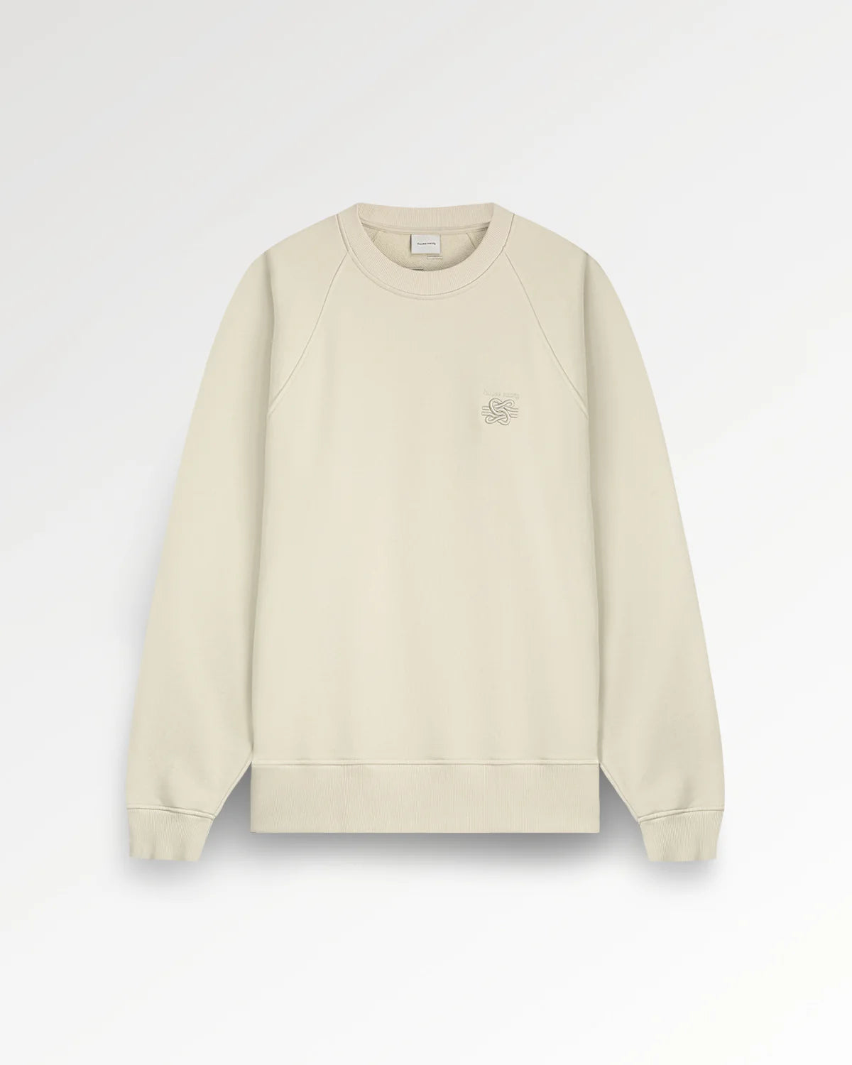 This is the essential, elevated sweatshirt. Crafted from a substantial 400 gsm french terry 100% organic cotton, this sweatshirt offers a structured regular fit with an exceptionally soft feel. A tonal 'Gowtu Knot' is delicately embroidered on the chest, a subtle signature that speaks to tradition and heritage. This piece merges quiet elegance with everyday comfort, making it a truly refined essential in seasonal Peyote.
