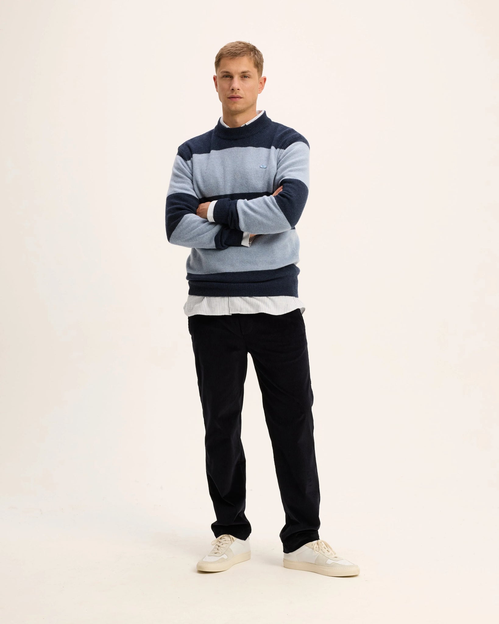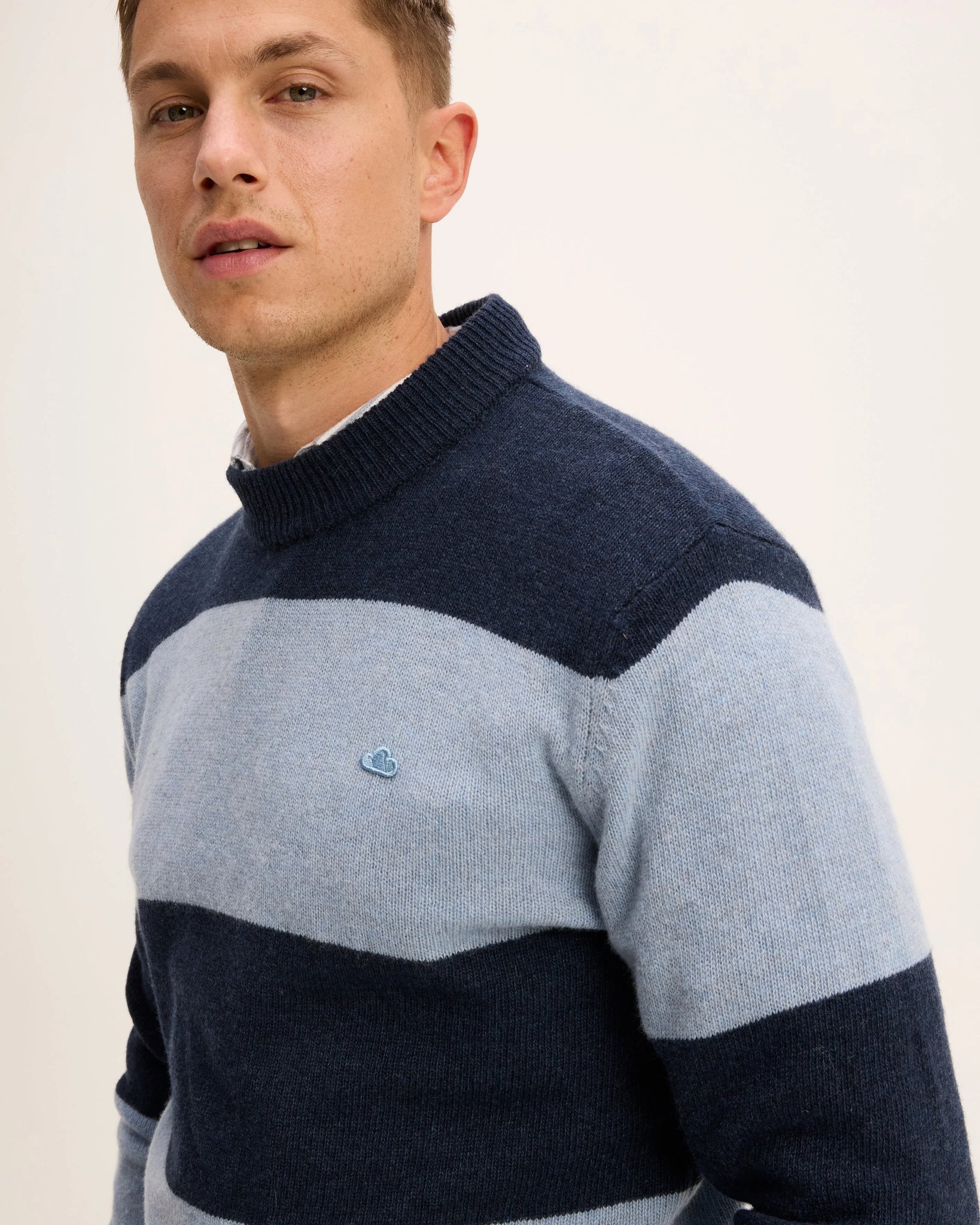The KYLO, is a knitted sweater with wide horizontal stripes and finished with our iconic cloud logo on the chest and made from the best Italian wool blend with a mid-weight knitting. The Kylo has a comfortable fit, which makes it suitable for all seasons and easy to style. Produced in Italy and designed in Rotterdam, quality is guaranteed.