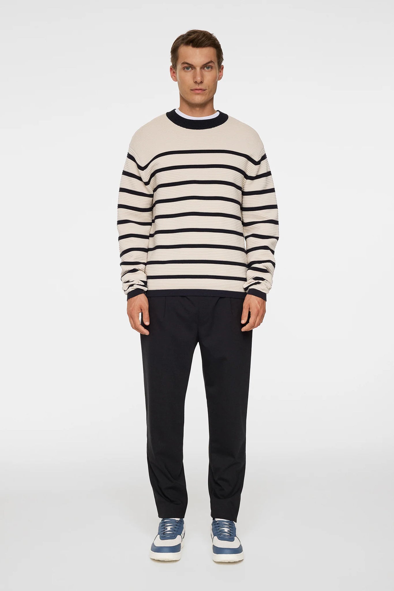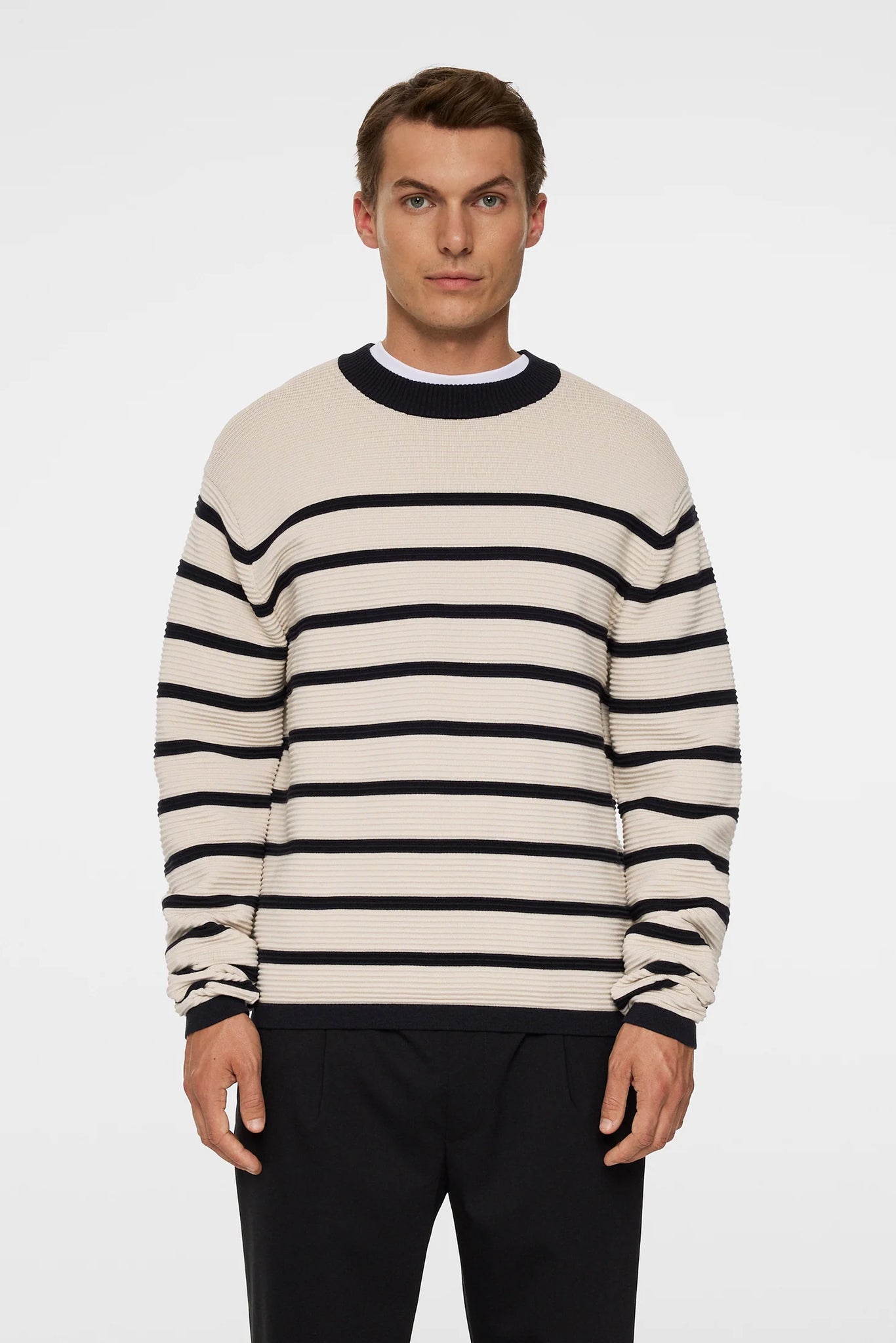 De Sawyer Sweater brengt tijdloze energie met een modern tintje. Hij is gemaakt van een premium mix van zijde, heeft een horizontale geribde structuur, contrasterende strepen en een subtiel gebreid Bridge-logo. Met zijn normale pasvorm en zachte gevoel is hij ontworpen om elk seizoenen als extra laagje te dragen - elegant, veelzijdig en comfortabel om te dragen.