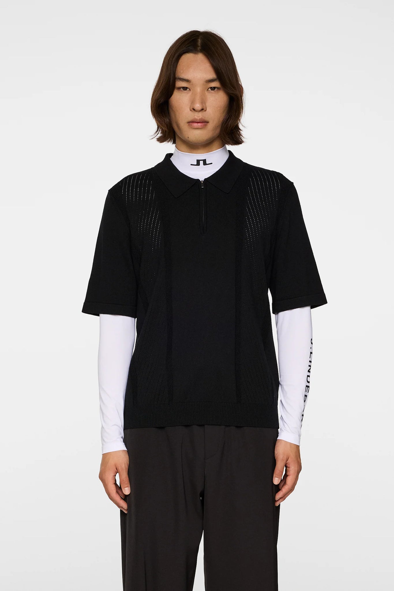 Remy Structure Zip Knit Polo Black