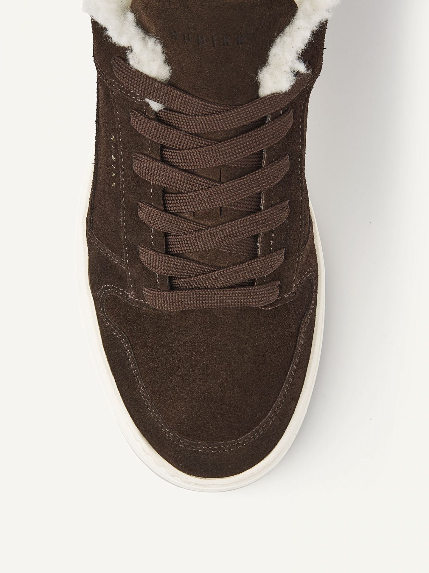 Ontdek NUBIKK's Basket Court Fur heren sneaker in donkerbruin suède. Deze sneaker is afgewerkt met een bijpassende zachte wollen voering en een strakke, ton-sur-ton zool. Vervaardigd uit hoogwaardig soepel suède, biedt dit model een rijke, warme uitstraling zonder in te leveren op comfort. De lichtgewicht EVA-zool zorgt voor een moeiteloze tred, de hele dag door. Een perfecte mix van verfijning en functionaliteit, ideaal voor dagelijks gebruik — met een subtiele maar krachtige presence.