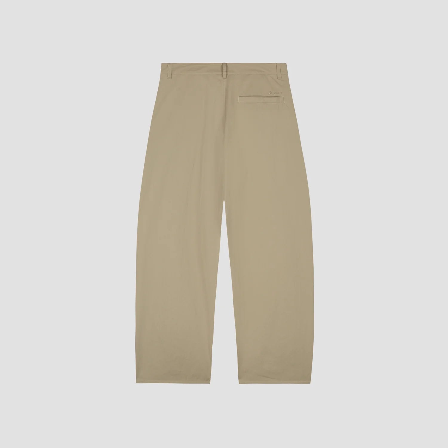 The Barrel Leg Pant in Treehouse delivers a sculptural silhouette with a curved leg shape. Crafted from durable cotton, it balances structure with comfort for a modern everyday staple.