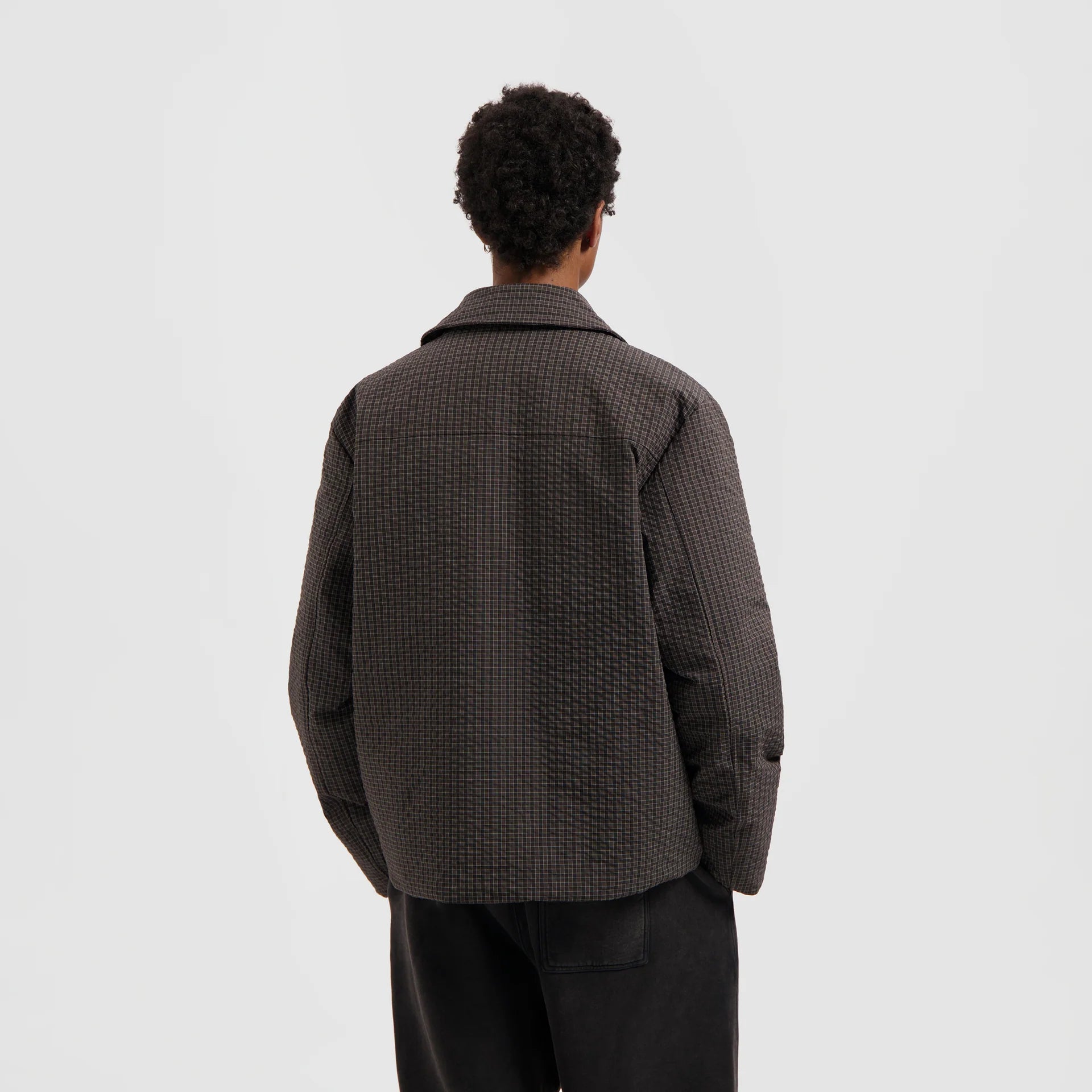 The Checked Padded Coach Jacket in Hot Fudge reimagines our iconic silhouette in a textured, checked fabric. With front pockets, subtle padding, and chest embroidery, it’s a statement outer layer designed for both comfort and style.