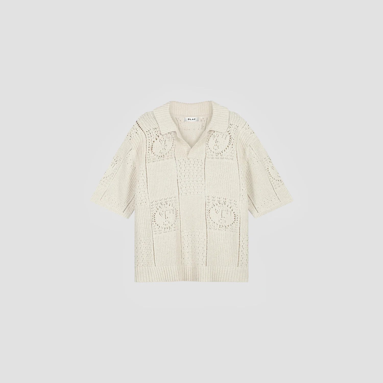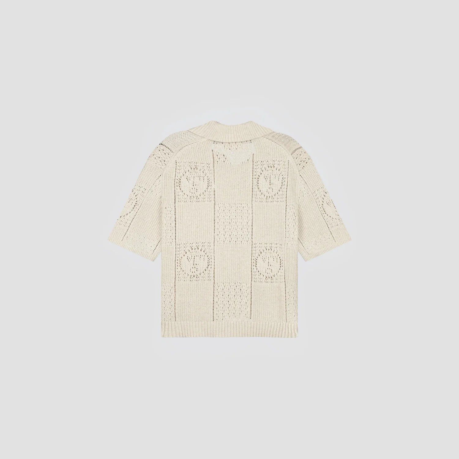 The Face Logo Knit Polo in Off-White brings a textured knit finish to a classic polo silhouette. Designed with a relaxed feel and a knitted face logo, it delivers a refined yet expressive staple for everyday wear.