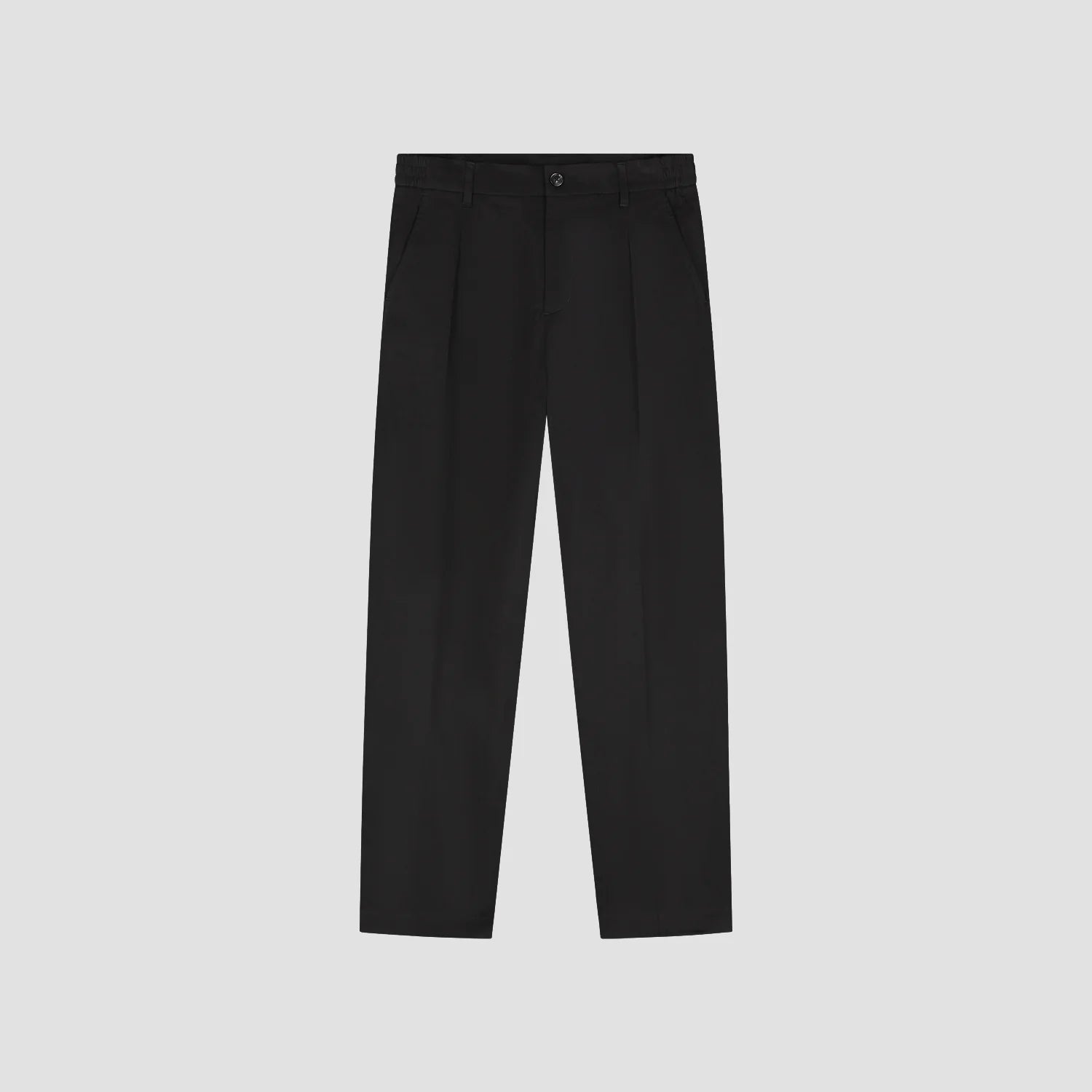 The Regular Pleated Pant in Black is a refined everyday essential. Featuring pleat detailing at the front and tonal ØLÅF embroidery above the back pocket, it combines a classic silhouette with modern detailing.