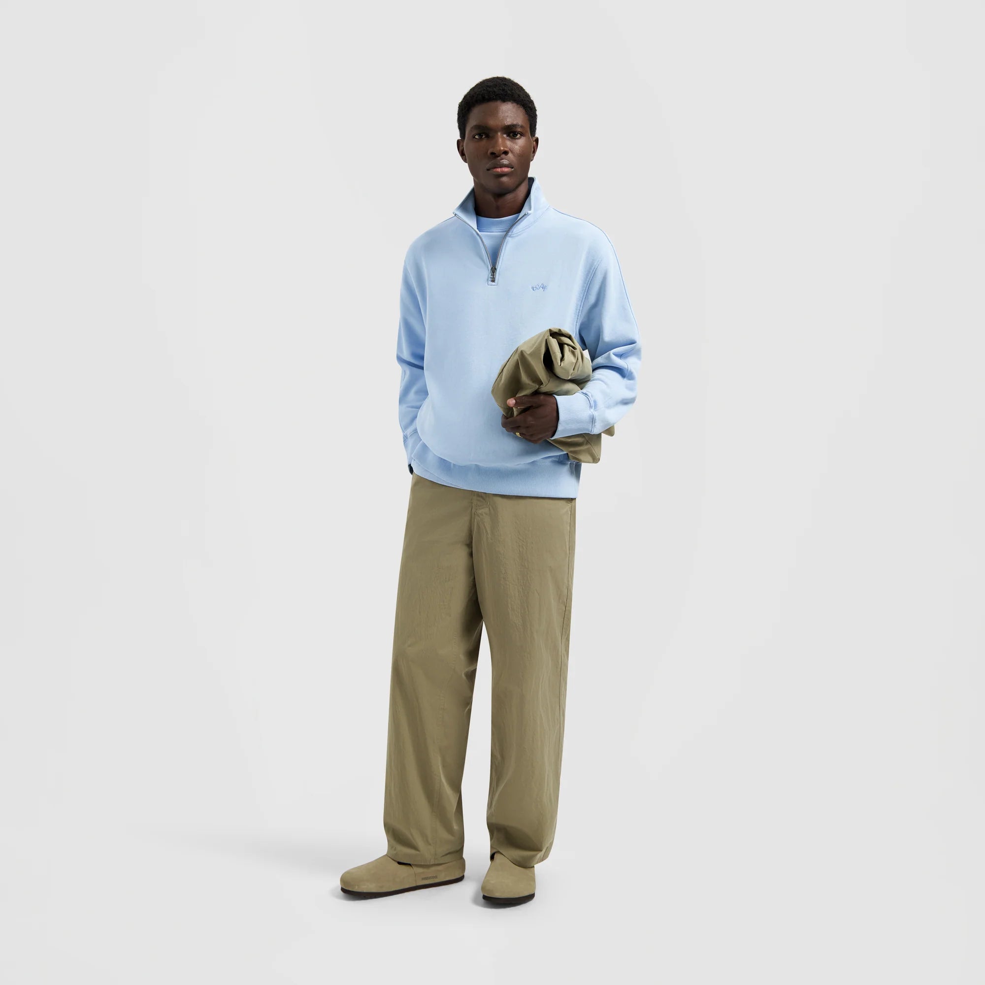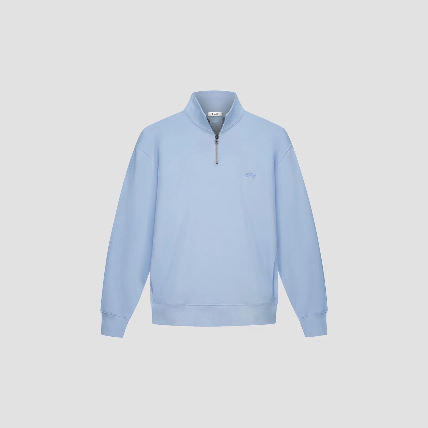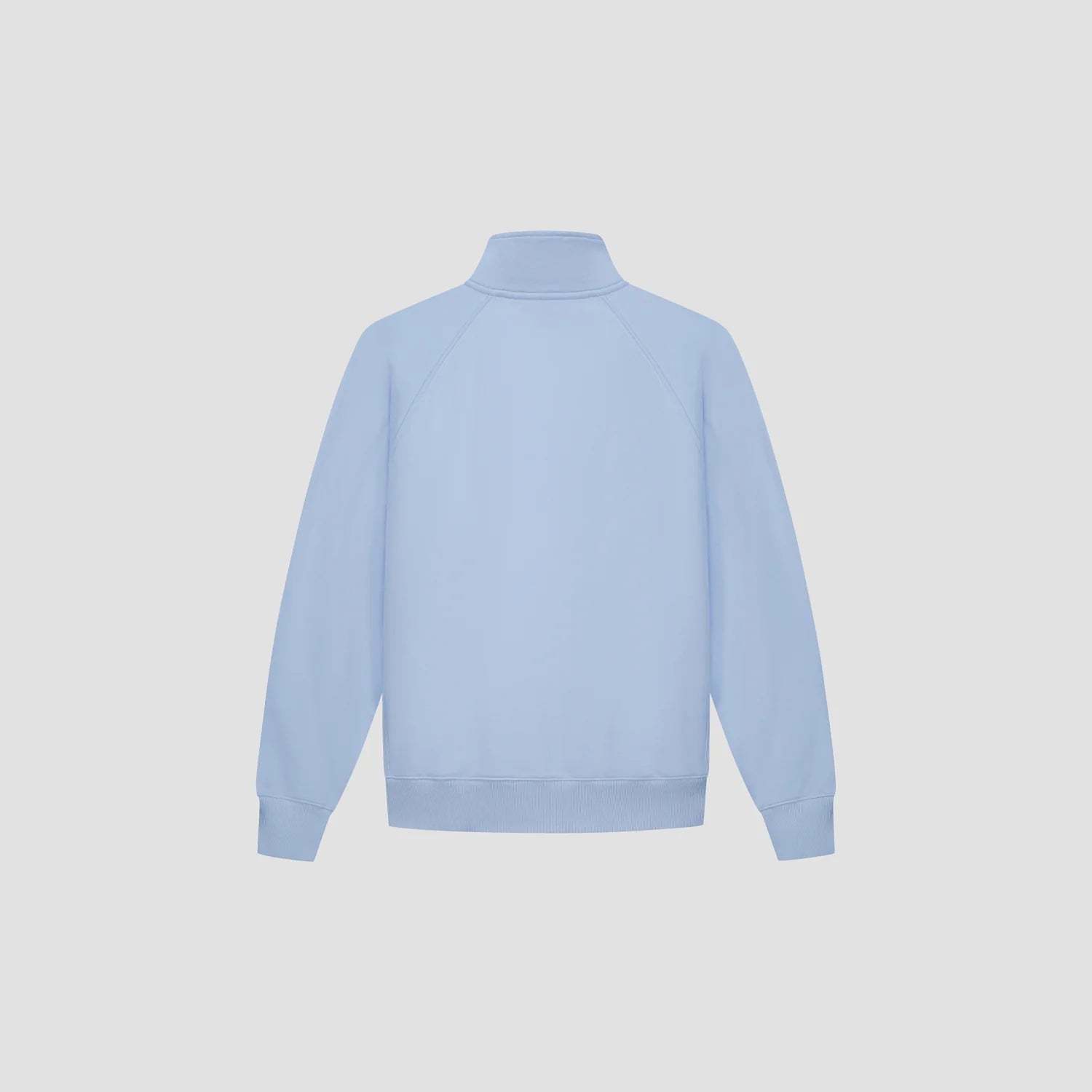 The Signature Zip Mock in Open Air brings a minimal half-zip silhouette crafted from soft organic cotton. The logo detailing on the chest adds refinement to a versatile layering essential.