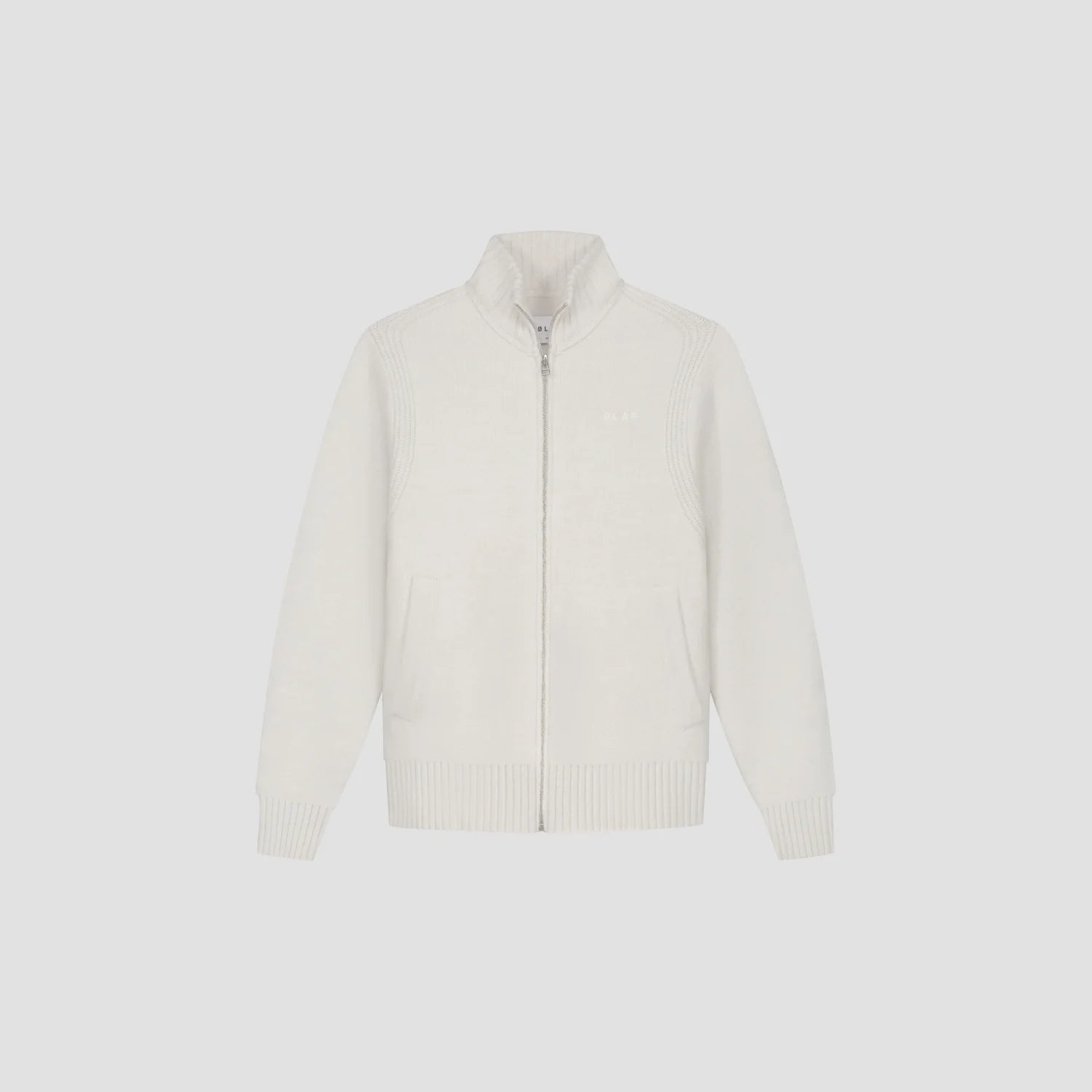 The Zip Knitted Mock Neck in Off-White is a versatile layering knit featuring a full-zip closure and mock neckline. Designed for warmth and functionality, it includes front pockets and a subtle ØLÅF logo embroidery at the chest — a refined staple for any wardrobe.
