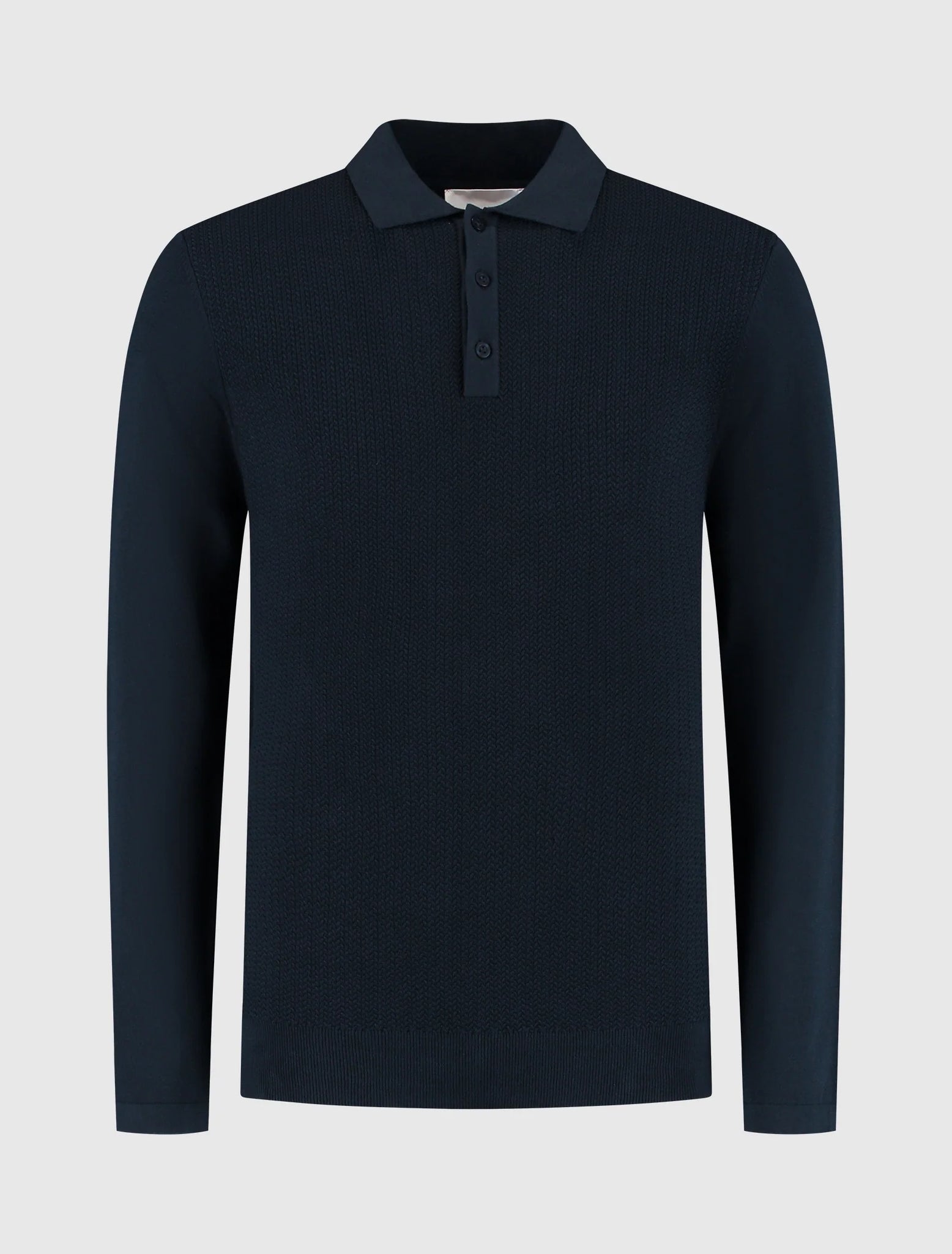 The Braided Structure Knit Polo comes in a regular fit with long sleeves and a classic polo collar with three-button closure. Knitted from 85% cotton and 15% polyamide, the yarn offers both natural softness and lasting resilience. Defined by its braided structure, the knit reveals crafted dimension, finished with self-fabric sleeve cuffs and ribbed body cuffs for a balanced frame.