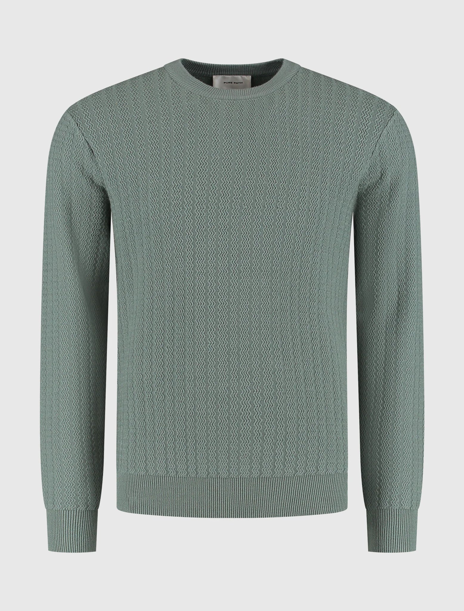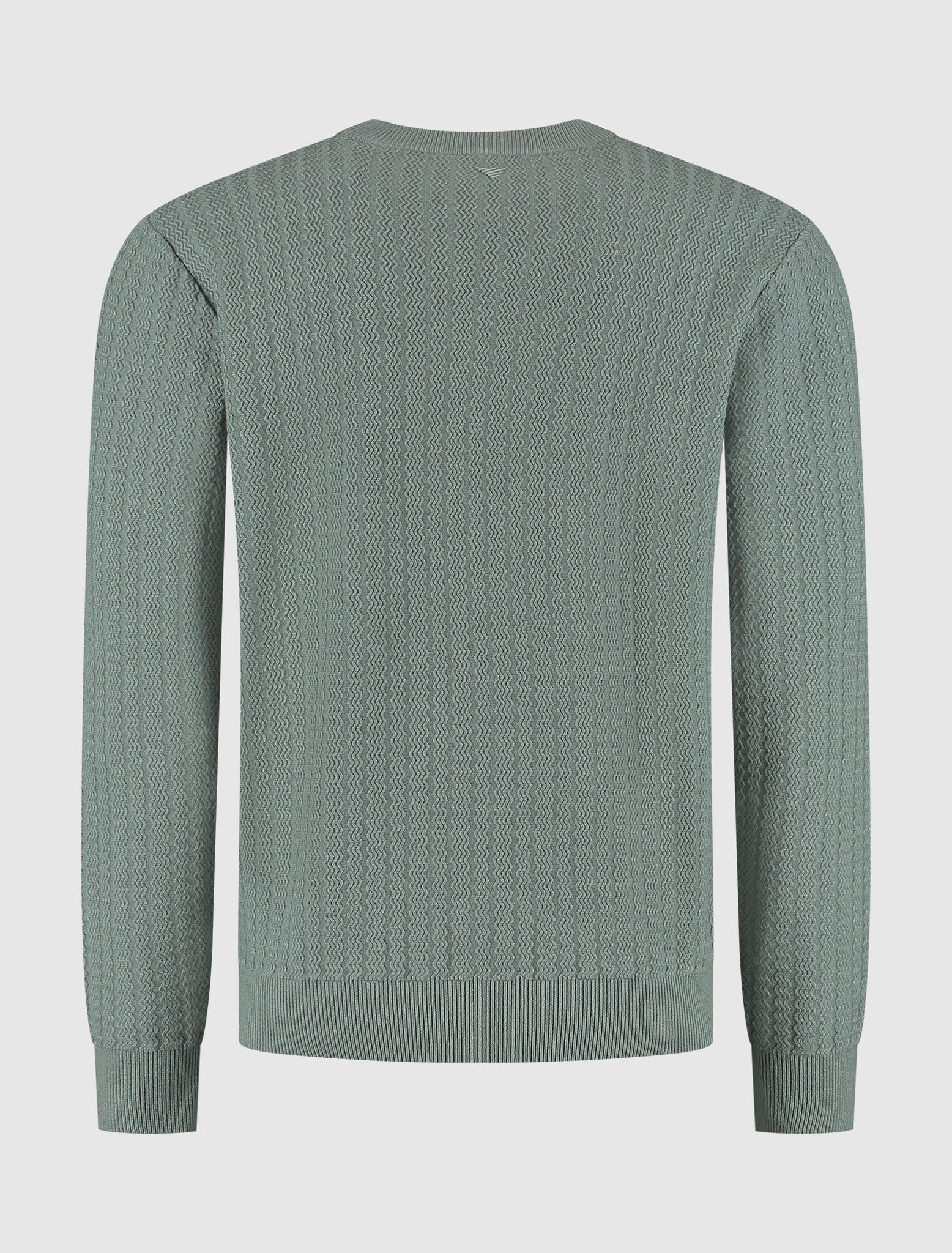 The Jacquard Structure Knit Sweater comes in a regular fit with long sleeves and a classic crewneck. Knitted from 52% viscose, 30% polyester, and 18% nylon, it offers a refined balance of softness, durability, and stretch. Defined by its jacquard structure, the sweater reveals depth in texture, finished with ribbed cuffs for a clean frame.