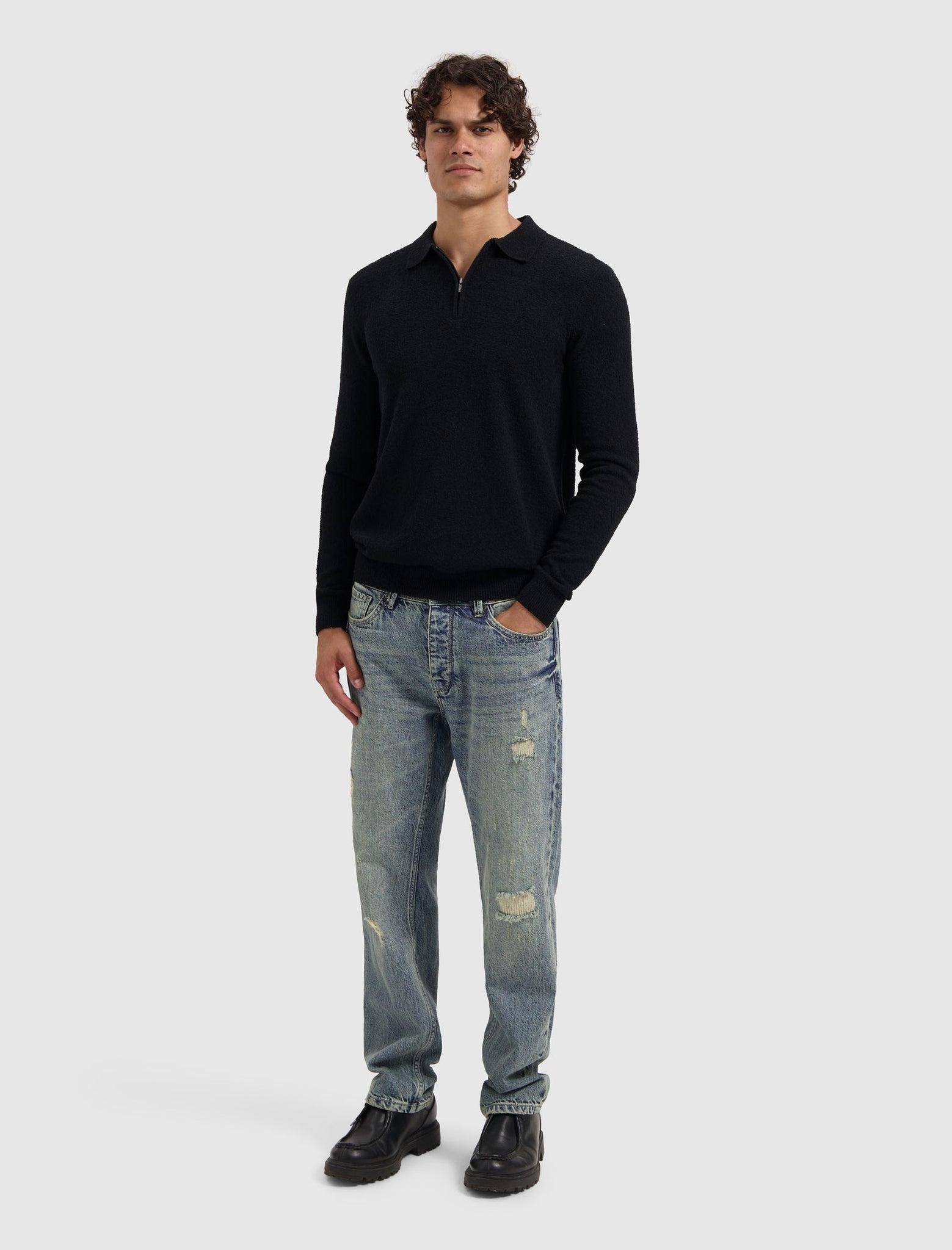 The Towel Knit Half-zip Polo comes in a regular fit with a polo collar and half-zip closure. Knitted from a blend of 62% cotton and 38% nylon in a terry towelling structure, it offers a textured feel with lightness and durability. Finished with ribbed sleeve and body cuffs for shape and balance.