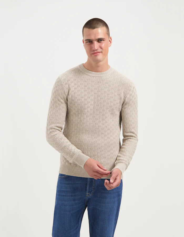 De BAREND is een pullover met opvallend 3D-blokpatroon. Gemaakt van 100% katoen voor zachte en ademende kwaliteit. De regularfit zorgt voor ultiem draagcomfort.