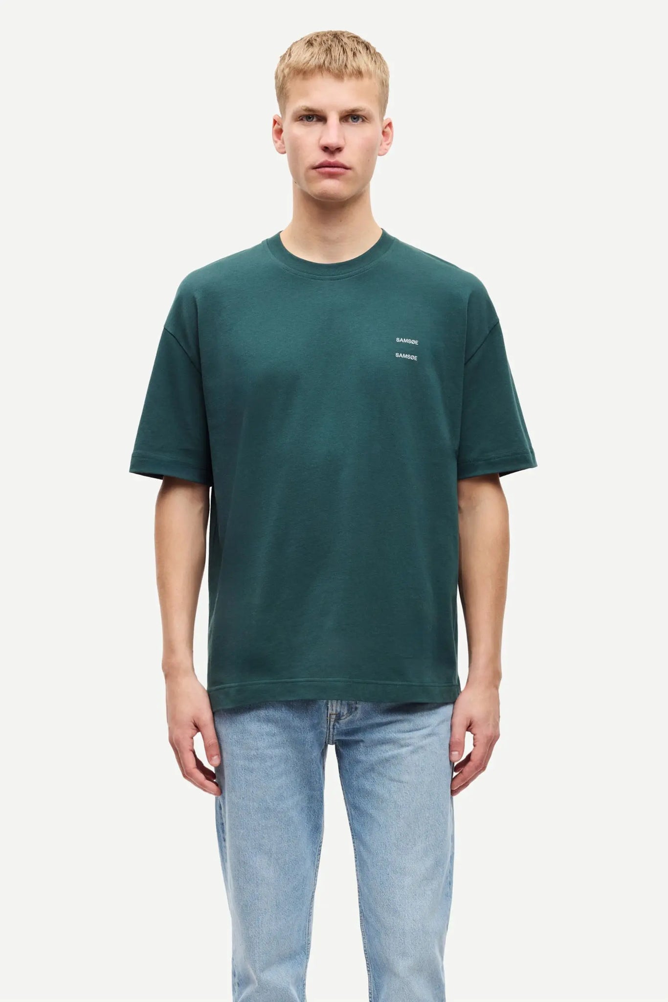Short-sleeved T-shirt with a loose fit and dropped shoulders. Rib-knitted crewneck. Printed Samsøe Samsøe branding on the chest. Main material made from 100% organic cotton.
