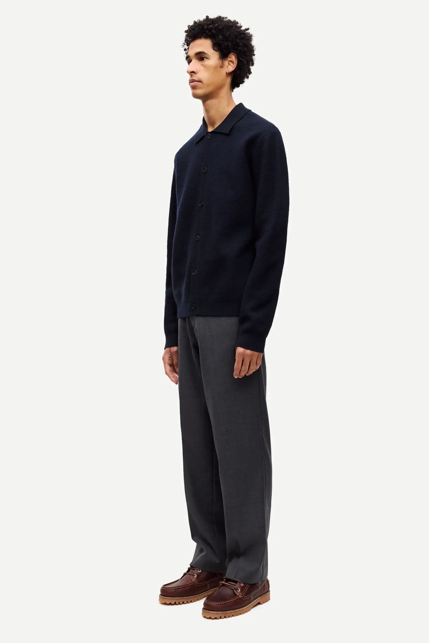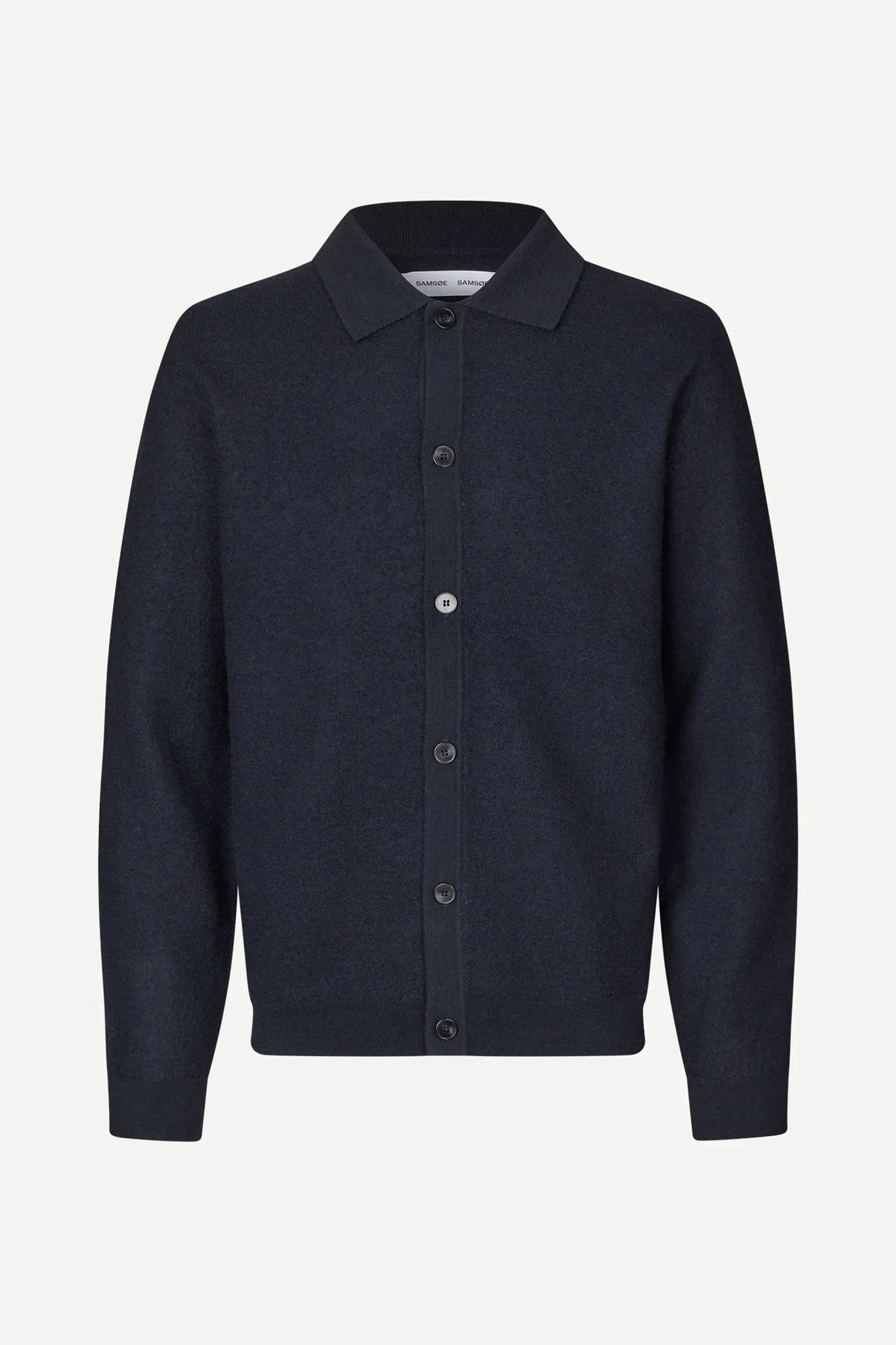 Collared cardigan with a regular fit. Button closure on the front. Rib-knitted cuffs and hem. Main material made from 100% merino wool.
