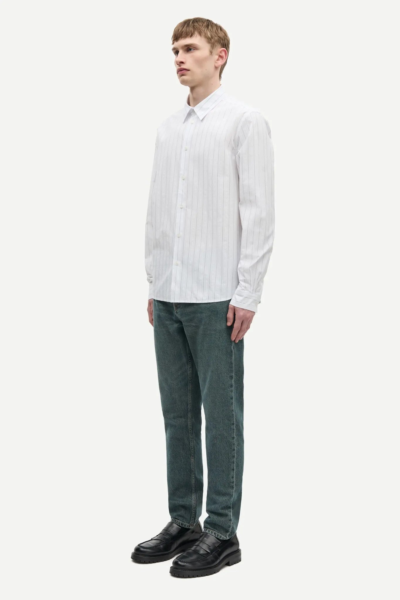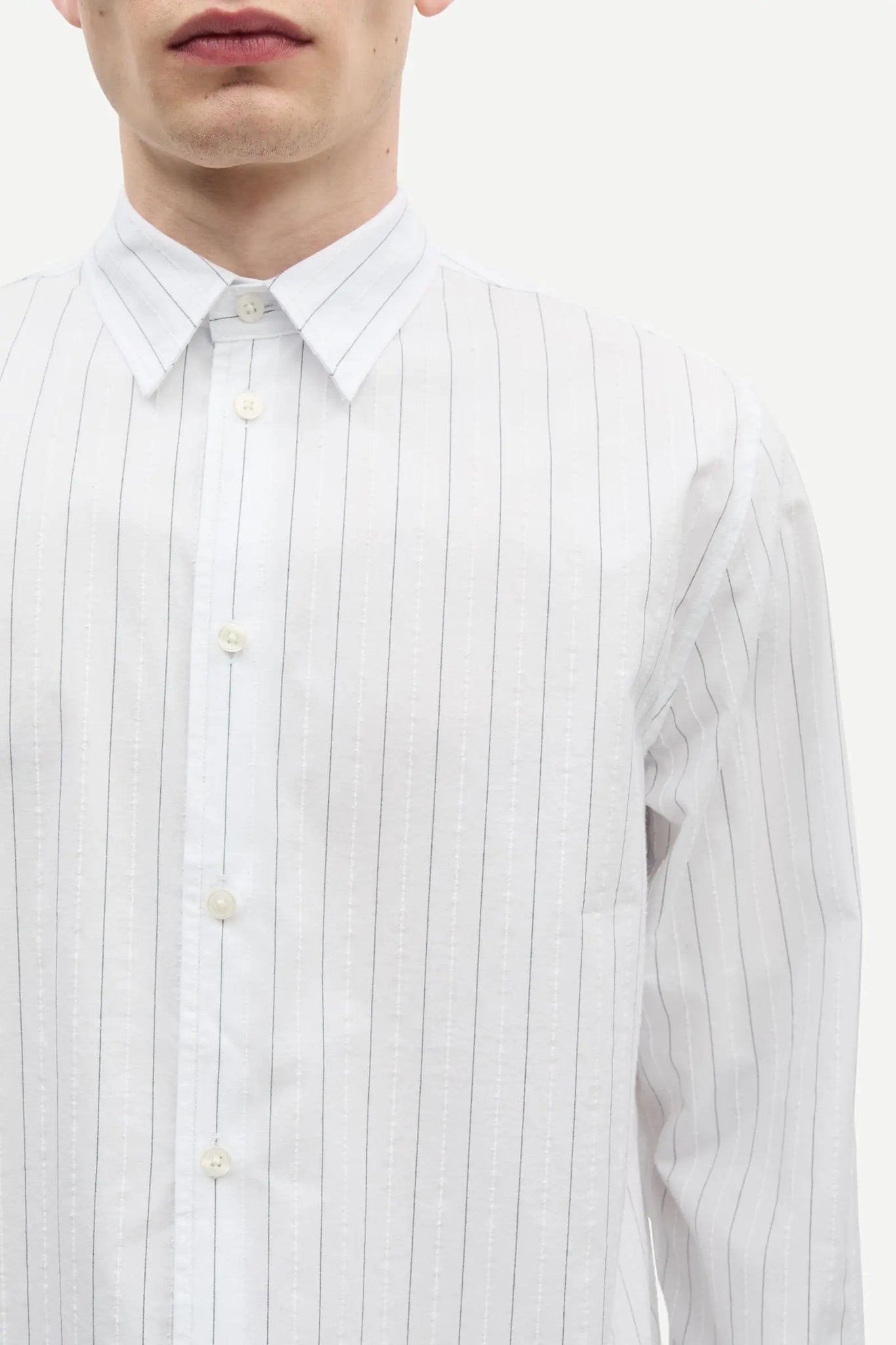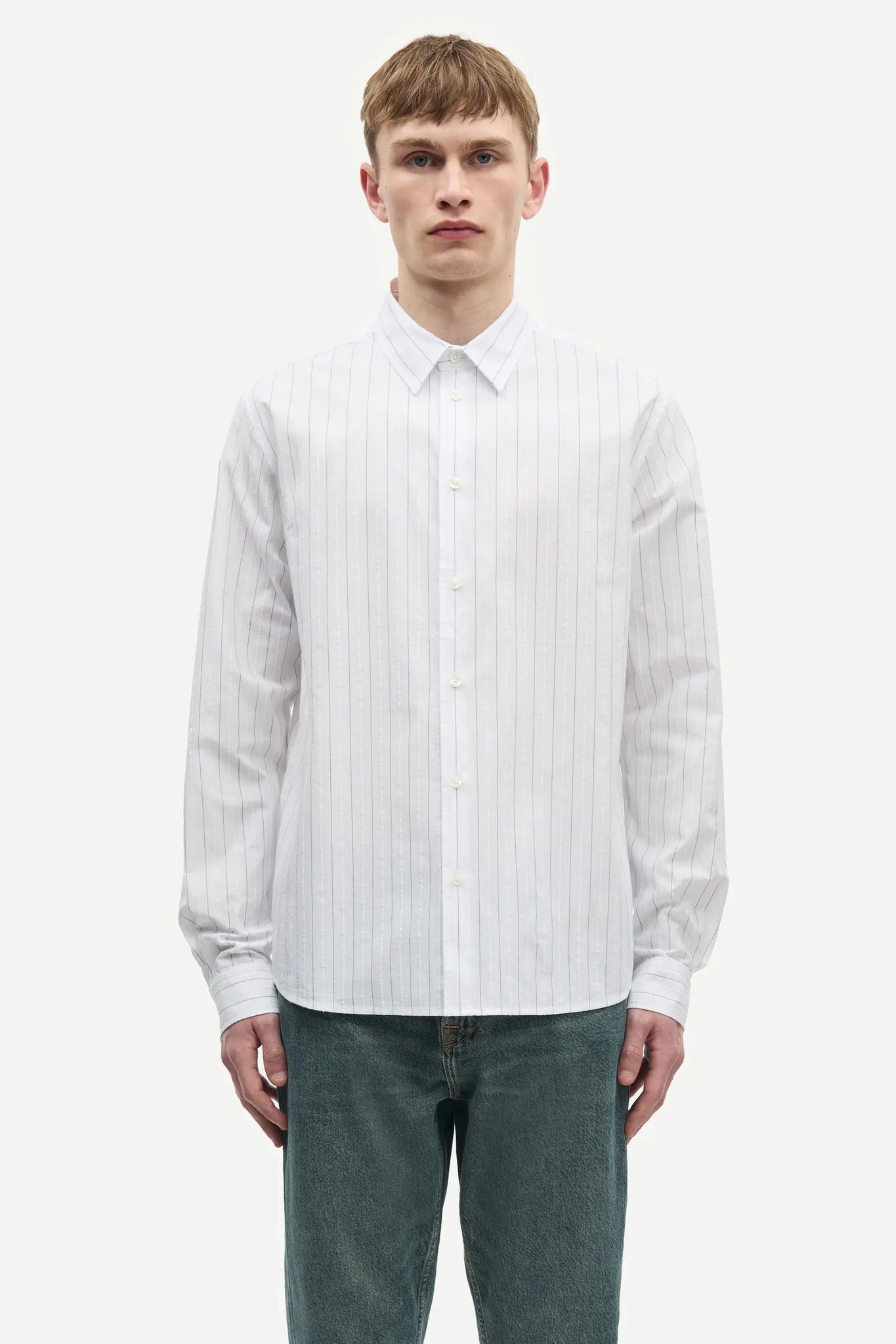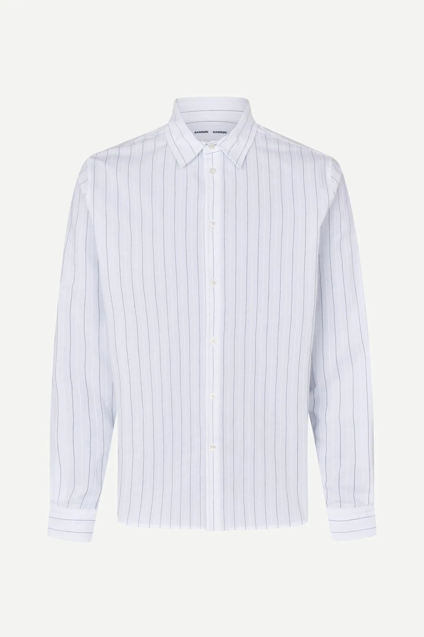 Long-sleeved striped shirt with a regular fit. Button closure on the front and buttoned cuffs. Neck yoke seam. Main material made from an organic cotton-blend.